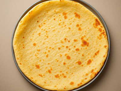 Masala Dosa is naturally rich in complex carbohydrates from rice and chickpea flours, providing sustained energy. The potato and green peas filling adds dietary fiber, vitamin C, and potassium, while olive oil contributes heart-healthy fats. Turmeric provides anti-inflammatory benefits, and chickpeas boost plant-based protein. The dish is cholesterol-free, low in saturated fat, and suitable for vegetarian diets.